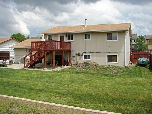 Everyone gets their own room in this beautiful 5 bedroom Bi-level. Living room, kitchen, and two bedrooms up. Family room, utility room and three bedrooms down. Kitchen has all stainless appliances and plenty of room. You can enjoy the Colorado Sun on the back deck in the green, landscaped and fenced back yard or visit the friendly neighbors from the green lawn in front. This home is a terrific value.