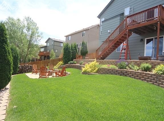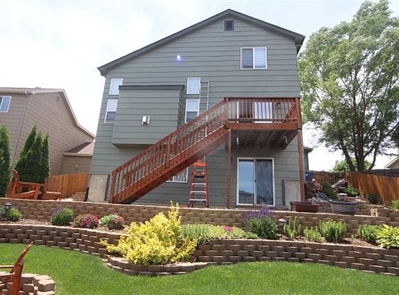 This home stands out above the other homes listed in this area. Seller's have maintained this home and it shows pride of ownership! New roof, new window coverings, new interior and exterior paint. Upgraded electrical fixtures, granite solid surface countertops in the kitchen, Italian slate tile in the entryways, kitchen, and baths with 42" oak cabinets in the kitchen. The living room and dining have red oak hardwood floors, vaulted ceilings and a gas fireplace for the cold Colorado nights. The lavish landscaping includes a 10 X 14 flagstone area with built-in fire pit, 13 X 35 concrete patio along the basement walkout and walkways are made of block pavers and flagstone. The unfinished basement has room for expansion to include additional bedrooms, bath, and recreational room. This home is a must see!