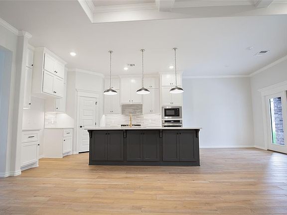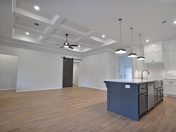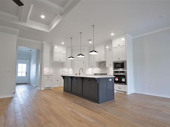 This Shiloh floorplan offers 2,220 Sqft of total living space, which includes 1,950 Sqft of indoor living space & 270 Sqft of outdoor living space. There is also a 625 Sqft three car garage with a storm shelter installed. At Homes by Taber, we include a storm shelter in every home because safety is not an option. This home offers 4 bedrooms, 2 full bathrooms, 2 covered patios, & a utility room. The great room features a luxurious coffered ceiling, a stacked stone surrounding gas fireplace, large windows, wood-look tile, Cat6 wiring, elegant crown molding, & a barn door! The up-scale kitchen has stainless steel appliances, custom-built cabinets to the ceiling, a large center island, stunning pendant lighting, a large corner pantry, & attractive tile backsplash. The primary suite features a sloped ceiling detail, a ceiling fan, our cozy carpet finish, & two HUGE walk-in closets. The primary bath has a walk-in shower, a corner Jetta Whirlpool Tub, a private water closet, & separate vanities! The covered back patio includes a wood-burning fireplace, a gas line, & a TV hookup. Other amenities include healthy home technology, a fresh air ventilation system, a tankless water heater, R-44 and R-15 insulation, & so much more!