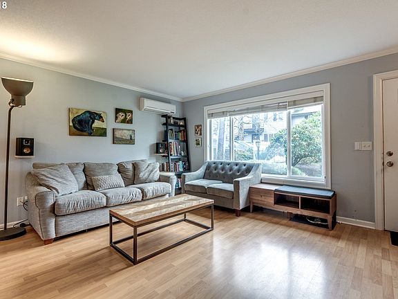 Sellwood End-Unit condo remodeled to be bright, cozy & quiet. Large master w/extra closet space. Updated cabinets, countertops & flooring. Ductless heating/cooling. NEW in 2017:Fridge, Convection Oven Range, cedar fences & paint. New metal roof in 2016. Custom laundry shelving & W/D incl. Creekside seating area, landscaped courtyard. Unit comes w/ 4 parking spots & convenient storage unit.