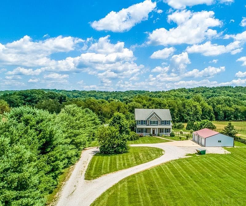 Country estate including 5 acres of fields and woods, a 4300 SF 2-story home over walk-out LL, detached 3-bay garage, water feature and pool with pool house and outdoor kitchen. Ideally situated to supply quiet, country living and still be only a 12-minute drive to shopping, restaurants, theaters, I-69 banks etc. This expansive home has a 2-story foyer and great room with volume ceiling. The spacious kitchen features SS appliances, pendant lights, an abundance of prep space, integrated pantry and 2 large, moveable islands with breakfast bar seating. One could be replaced with a big farm table. The breakfast room has built-in banquette seating framed by windows bringing in natural light. A large laundry room has counter space and cabinets and can be accessed from the breakfast room or an outside door. The great room opens into the massive, screened porch overlooking the beautiful surrounding greenspace and the pool area. The main level master suite enjoys an en-suite bath with double vanity, free standing tub, and separate shower. Current owners closed off the opening between the great room and the lovely sunroom to create a private living space accessed through the former walk-in closet. There is another closet. This could all be changed back re-creating the original closet and re-opening the sunroom to the great room. Three bedrooms are on the 2nd floor including a second master with en-suite bath, a hall bath and a loft space overlooking the great room. There was originally a laundry room on this level as well, and the space is still there to re-establish it. The LL offers a rec room with patio doors opening to the backyard, the 5th bedroom, full bath, an office and a den. With lots of space both inside and out, this could be your dream property. Schedule your private showing today!