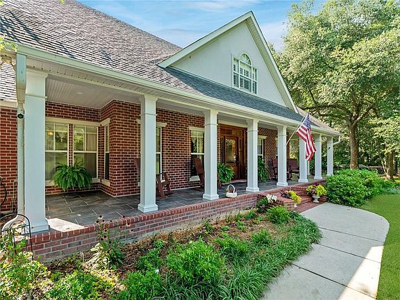 Beautiful country estate with included income producing 2BR/1BA house. Priced BELOW appraisal! Lovely horse property is fenced/cross fenced on 16.64 acres! 4 stall wood & black iron barn, 22 x 56 2-story workshop. Stunning main house has wood & brick floors, crown & wainscoting, wood/gas brick fireplace, office/studio, mud room, gorgeous front & back porches overlook a stocked pond & gorgeous Live Oaks. 100KW generator, 3 paddocks, shaded bridge to barn, blueberries, figs, hills & more! Seller Motivated!