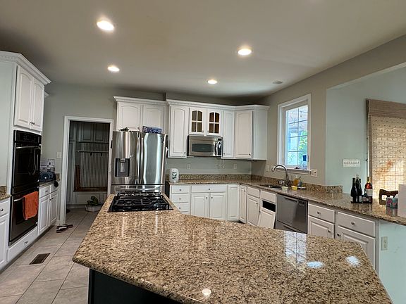 * Gourmet kitchen with stainless steel appliances, granite countertops, and an attached sunroom for casual dining or morning coffee.