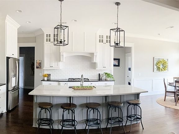 One of a kind, custom home, XL 3 car garage, in desirable Tuscany Subdivision. Beautiful home offers 4 bedrooms, 3 ½ baths, office, dining, large bonus room. Bright, open floor plan, hardwood floors, oversized windows, custom built-ins and craftsman trim throughout. Kitchen features XL walk-in pantry, granite countertop, large quartzite island with double sided cabinets, double ovens and gas stove. Primary bath has soaker tub, double vanity and spacious walk-in tile shower. Laundry, primary bathroom and closet conveniently connected. Walk-in bedroom/linen closets throughout. Screened-in cedar porch with brick/gas fireplace. Natural gas for outdoor kitchen/grill. Large, corner lot with watering system. 2 Lennox HVAC systems (new coils, maintained 2x a year). Massive floored walk-in attic. Refrigerator and above ground EF5 tornado shelter do not convey. Community playground, clubhouse, sports court and pool. *Updated price matching new updated larger square footage (attached) from accurate professional appraisal*