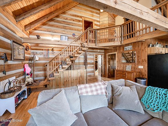 Rare Log Home, Open, Spacious, 1st Floor Master, Wonderful Views, 16.25 Wooded Acres, ATV/Walking Trails, Working Farm or Amazing Home Site in Private Setting (Be sure to see pictures). Also listed as Home, on MLS 1580731. This 3 bedroom, two and a half bath is well maintained with tons of upgrades. Walk past the covered front porch and into a large 2 story great room wide open to the eat in kitchen. There's plenty of countertop and storage space along with a center island that acts as a breakfast bar. The 1st floor Primary Bedroom has plenty of space for even the largest furniture. The second floor has 2 bedrooms and open loft/bonus area. You'll enjoy a walkout finished basement with 10 foot ceilings & large windows. There's also a large oversized 1 car garage and patio.