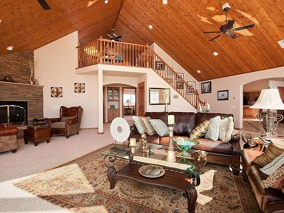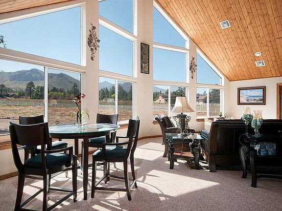SPECTACULAR PANORAMIC VIEWS OF THE PEAKS, MT ELDEN & PONDEROSA PINES! Beautiful custom home on 4.45 acres in the North Peak subdivision (borders forest land and trails)! Foyer, Library/Den, Great Room, Formal Dining Room, large Breakfast room & very spacious bedrooms including 2 master suites. The expansive Great Room features soaring T&G ceilings, a wall of windows gazing towards the mountains & stone fireplace. The large kitchen includes an island, dual sinks, Jenn Aire stainless appliances & dual oven. The spacious master suite features a fireplace, private deck, walkin closet, jetted tub, separate shower & dual sinks. The loft with T&G ceiling could easily be converted to a large 4th bedroom. Other features included are dual heat & A/C units, Alder doors, cabinets & trim, covered deck & pavered patio, Hunter Douglas Top Down/Bottom Up Shades, ceiling fans, central vacuum, recirculating hot water & 3 car garage. YOU WON'T BE DISAPPOINTED!