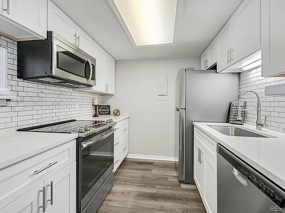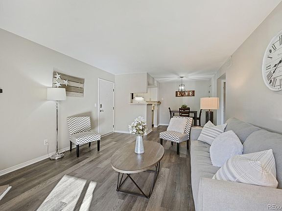 Beautifully remodeled 1 bedroom, 1 bathroom condo located in Lowry area of Denver! Close to everything, you will be thrilled with all the fantastic shops, restaurants and things to do near your new home. Directly across from the condo is an open grass area. This is perfect for taking your dog for a walk or a game of frisbee with a friend. Directly behind your building is a cute pond with a water feature. In the summer you can enjoy the community pool or just relax on your sunny porch. The kitchen features fabulous upgrades such as quartz countertops, white shaker soft close drawers, brand new stainless steel appliances, and a refrigerator with an ice maker. This home comes equipped with AC and a brand new furnace (2020). Fresh paint throughout the unit, including the ceilings. There is a laundry closet with plenty of room for a full-size washer dryer, keyless lock on front door and vinyl waterproof floors. The fully remodeled bathroom features lots of storage which is tastefully hidden behind a barn door. The master bedroom has a very soft luxurious carpet and a large walk-in closet. This is the home you have been waiting for. One Year Home Warranty is also provided from the seller. Please use Clorox wipes provided, when viewing the home. This will help keep you and your new home clean and safe.