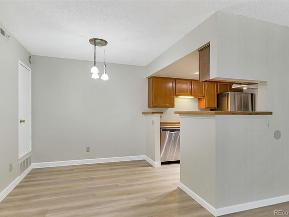 Welcome to this centrally located, recently updated condo, offering a perfect blend of thoughtful upgrades and modern style! Spanning 948 square feet, this inviting 2-bedroom, 2-bathroom home is packed with updates for move-in-ready convenience. As you step inside, you’ll notice the fresh paint and brand-new laminate flooring throughout the spacious living room, where a cozy wood-burning fireplace sets a relaxing tone. The open kitchen and adjoining dining area are both functional and stylish, featuring a new stainless steel French door refrigerator, freezer, oven, and glass-top range. The primary bedroom offers a peaceful retreat, complete with an ensuite bathroom and a recently updated shower. Both bedrooms feature new carpet, fresh paint, and generous closet space. A dedicated laundry room, equipped with a side-by-side washer and dryer, adds to the convenience of daily living. Outside, enjoy your covered patio with views of the community pool—perfect for morning coffee or evening relaxation. There’s also an outdoor storage closet for extra space. This ground-floor unit includes a reserved parking space and guest parking conveniently located nearby, making access effortless. As part of a vibrant community, you'll have access to a recently updated outdoor pool and clubhouse, ideal for hosting gatherings. Located in a premium central Denver spot, this condo offers easy access to Lowry's shopping and entertainment, nearby parks and trails—including the scenic High Line Canal—and proximity to hospitals and DIA. With $30,000 in upgrades over the past year, including new HVAC (new furnace and new AC for $9,000), flooring, appliances, window blinds, this home is truly move-in ready