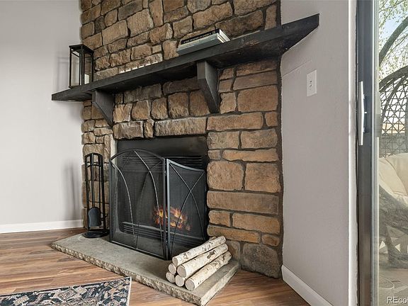 Step inside to a light-filled living room centered around a cozy wood-burning fireplace with natural stone surround—perfect for Colorado evenings. The modern kitchen features new shaker cabinets, quartz countertops, and stainless appliances, while the open layout makes entertaining easy. The oversized bedroom with walk-in closet, updated bath, and abundant storage add to the everyday comfort.