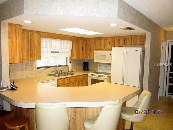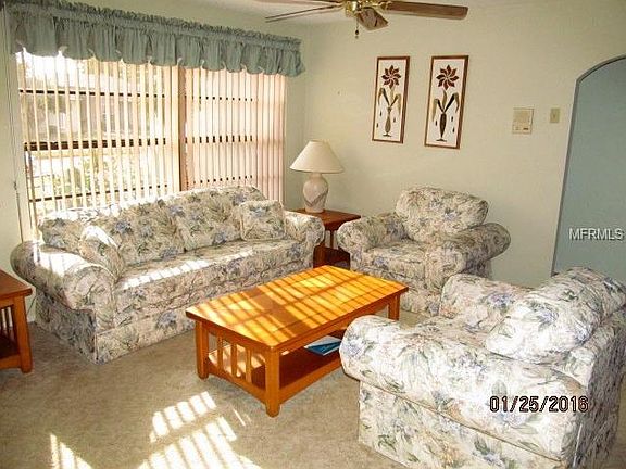 This stunning 2 bedroom, 2 bath, 2 car garage is absolutely move in ready. As you walk into the home, there is an inviting layout with a living room and separate dining room. The kitchen has ample counter space and cabinets. The breakfast bar overlooks the large family room and breakfast nook which is perfect for entertaining. The spacious master suite has a large walk in closet. The master bath has dual sinks with a large wrap around vanity. As a bonus, there is a generous sized enclosed lanai off the back of the family room. The lanai has full sliding windows, plus screens so you can use it all year round. The landscaping is perfect and the back yard is fully fenced. The home has hurricane shutters, hurricane strength garage door, the sprinklers are on a well and the home has been recently painted. This is a must see home as it is immaculate and move in ready. Furnishings are negotiable. Room measurements should be verified by buyer