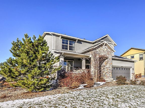 GORGEOUS 2-story home on a unique, LARGE corner lot in the Leyden Rock community! Location-location... only 1 block to the community clubhouse/pool/parks!! Meritage's popular Telluride model features a bright and spacious open concept floor plan, main floor office/den and upgraded formal dining room. One will find beautiful hickory hardwood flooring throughout the main floor. The gourmet kitchen offers 42" cabinetry, stainless appliances, an island with barstools, a double oven, gas cooktop, large custom corner pantry, and plenty of space for a table. Just off the kitchen is a grand 2-story vaulted living room, gas fireplace with stone all the way to the ceiling, and open to the 2nd floor loft. On the 2nd floor there is a large master bedroom with the best mountain views in the house! The master bedroom includes a 5-piece master bathroom, with his & hers walk-in closets! Bedrooms #2 and #3 (which includes custom built-ins) are also located on the 2nd floor, joined by a Jack & Jill bathroom. The fully finished basement includes a large family room with bar area, bedroom #4, a bathroom, and a large storage room. The kids will enjoy the built-in play area under the basement stairs!! There is a 3-car tandem garage for the cars and storage, and a backyard shed for the yard tools. Given the lot is nearly 1/3 acre, there is plenty of room to entertain friends and family in the yard, on the 2-level stone patio, and take in those mountain views!! Welcome home!!!