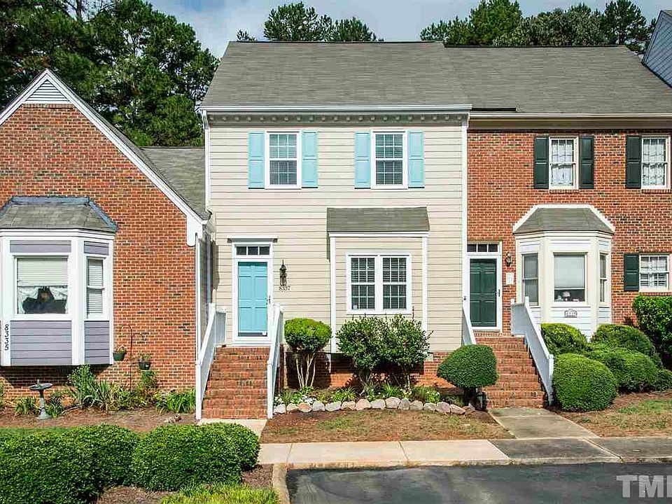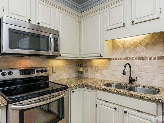 Charming Townhome Filled With Upgrades! Very Well Maintained! Beautiful White Kitchen w/Granite, Tile Floor, Backsplash, SS Appl, Wainscoting, UnderCounter Light & Island. New Floor in Family/Dining Area. New Hardware, Lighting & Plantation Blinds. All New Windows/New Exterior Paint. Iron Balluster Stair w/New Carpet. Bedrooms w/Private Baths. Master Bath Updated with Granite, New Sink/Hardware. Deck Overlooks Wooded Exterior. New Front/Back Landscaping & Gutters. Pool/Tennis. Easy Access to I-540!