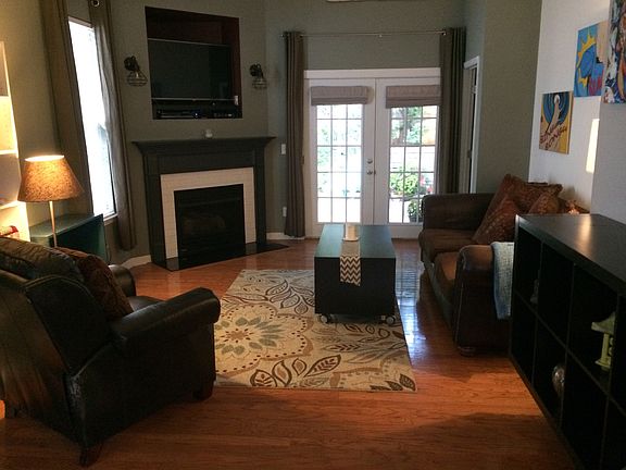 Nice end unit with spacious master bedroom on the main. MBR has polished concrete floor, walk-in closet and full bath. Kitchen has polished concrete floor and LED recessed lighting and is open to the dining and living room, great layout for entertaining. Living room and dining room has prefinished hardwood floors. Upstairs are 2 good sized bedrooms and a full bath. All appliances, gas grill and window treatments remain. Beautiful private patio, patio furniture included. 1 yr. home warranty.