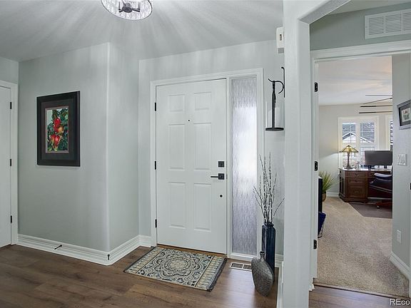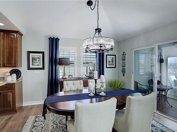 Welcome home to this beautiful duplex in gated Heritage Todd Creek- a 55+ Active Adult Living Community! This stunning ranch home features a finished basement, plus a bonus sun room and exterior deck. There are 3 bedrooms, 1 bonus room/office, 3 bathrooms, and a 2 car attached garage. Rich cherry cabinets, granite counters, and stainless appliances including a gas stove, french door refrigerator w/ bottom freezer, dishwasher, and microwave. A large Island w/stool seating and pantry corner closet offers lots of shelving for storage. A Spacious great room opens to kitchen/dining room and features gas fireplace with beautiful wood mantel; while, the all season sunroom addition is located just off the dining area. Laminate wide plank flooring accents the living area and the bedrooms feature plush carpeting. A Main floor primary bedroom is complimented by a 3/4 bathroom with dual sink vanity with lots of drawer/cab space, a stall shower, and a spacious walk-in closet. A sliding barn style door separates the bedroom and bath. The 2nd bedroom, full guest bathroom, and laundry room complete the main floor Laminate wide plank flooring, plantation shutters and fresh paint complete this amazing home. The finished basement offers a 3rd bedroom, craft room, 3/4 bath and a large family room with planked flooring. The extra large lot provides the perfect place to relax or play cornhole or yard darts, Just a few blocks away is a clubhouse that features 2 pools, tennis courts, a gym, and a public restuarant and golf course. With over 60 clubs and lots of activities, you will never have to leave the community to have fun. Heritage Todd Creek is truly a wonderful place to come home to and is located less than a mile from the Quebec E-470 exit. Relax on the deck while the HOA does all the work - your lawn, snow removal and exterior home maintainane is all provided by the HOA. Life is Good!