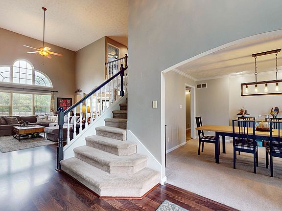 This beautiful, 4 bedroom home with a fabulous outdoor entertaining area is waiting for you on a cul-de-sac lot in Franklin Township! Explore this home via interactive 3D home tour, complete with floor plans, video & more. The towering 2-story great room features a gas log fireplace and large windows for abundant natural light. Meal prep is a delight in the spacious kitchen with center island, breakfast bar, stainless steel appliances, and tile flooring. Enjoy a main-level primary bedroom with a tray ceiling, a spacious walk-in closet, and a private full bathroom with double sinks and a whirlpool tub. This 2-story home features several multifunctional spaces, including a main level den, a loft, and a huge 4th bedroom with walk-in closet. Delight your guests in the expansive backyard with full privacy fence and concrete patio with a gas hookup for a built-in grill. Meadow Bend neighborhood offers a community playground and convenient access to nearby dining, shopping, schools, and more!