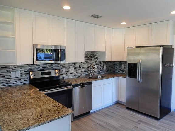 This home has been totally refurbished- from walls, floors and ceilings. Kitchen has soft-close wood cabinets, granite counter-tops, large pantry and stainless appliances. Wood plank style tile floors throughout home. Bathroom features tile shower and pedestal sink. No worries here with: new air-conditioner; the home was fully re-wired with new cam lighting and ceiling fans; plumbing was totally updated including pipes under the floor and hot water heater; California closet systems; New hurricane rated garage door and opener and so much more. Washer/dryer utility area located in separate utility room in garage area. A beautifully renovated and updated home in a wonderful neighborhood! Price Reduction $150,000 6/21/18