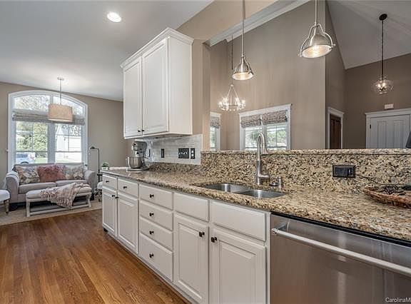 Located on one of Birkdale's most desirable streets, this craftsman style home oozes style and charm with all the features you've been looking for! The updated kitchen (stainless steel appliances, subway tile backsplash, new light fixtures, granite countertops) opens to a large great room, cozy keeping room and dining room with vaulted ceilings. The main level has hardwood floors and features the master on the main level with an updated bathroom (white custom cabinets, updated tile shower, granite countertops) and a spacious walk-in, custom closet. Also on the main level is a large laundry room (with a barn door and drop zone area off the garage), and a updated powder room with shiplap and updated fixtures. The upstairs features 2 bedrooms, full bath, and large bonus room that can be used as a 4th bedroom. The exterior has a wrap around porch that is perfect for relaxing, and private fenced backyard with brick patio. Fantastic location close to Birkdale Village and Lake Norman!