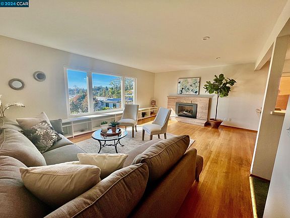 Nestled atop the serene hills of El Cerrito, sits a stunning home offering breathtaking panoramic views of the San Francisco Bay. This residence has been a source of joy and happiness for many years. As you step inside, you’ll be spellbound by the living area with an impressive wall of windows with endless views and dazzling light, anchored by a mid-century modern fireplace. This warm and inviting upstairs space is equipped with chef’s kitchen and comfortable dining area. The primary bedroom suite is a private retreat with awe-inspiring Bay, Golden Gate and Richmond San Rafael Bridge views, ensuring a serene start to each day. Unique to this home is a versatile full downstairs living/play/workshop/ADU/In-Law/Au Pair area- perfect for hobbies, a home office or separate residence. The enchanting yard surrounded by mature trees provides privacy and tranquility for ultimate California indoor-outdoor living. An ideal neighborhood close to a multitude of dining choices, shopping, open space, parks, trails, shopping, top-rated schools, AC and BART transit stop just steps away and more! Open Saturday and Sunday 1:30 - 4:00