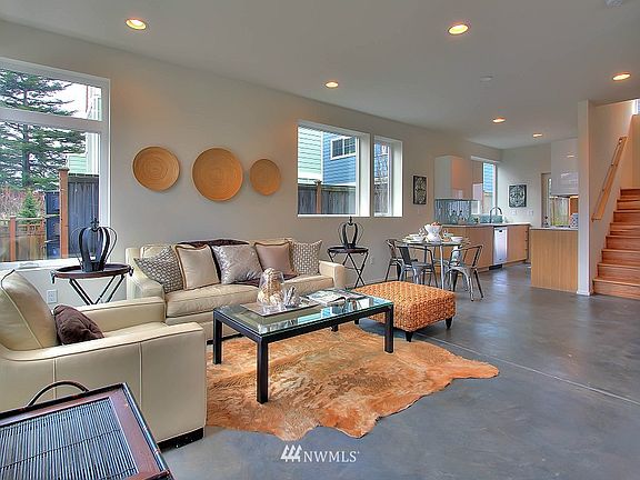 Wonderful contemporary home by the local builder LLJ Ventures. Popular location and good neighborhood, nearby schools, shops and parks. Polished concrete floors with entry into living room, kitchen, great room. Quartz counter tops, custom cabinets, nice bright spaces and natural light. Upstairs are two additional bedrooms and one bath, and spacious master bedroom and bath on the third level. Terrific, sunny rooftop deck, parking pad and good storage. Ballard living at it’s best!