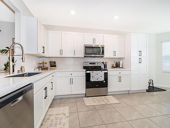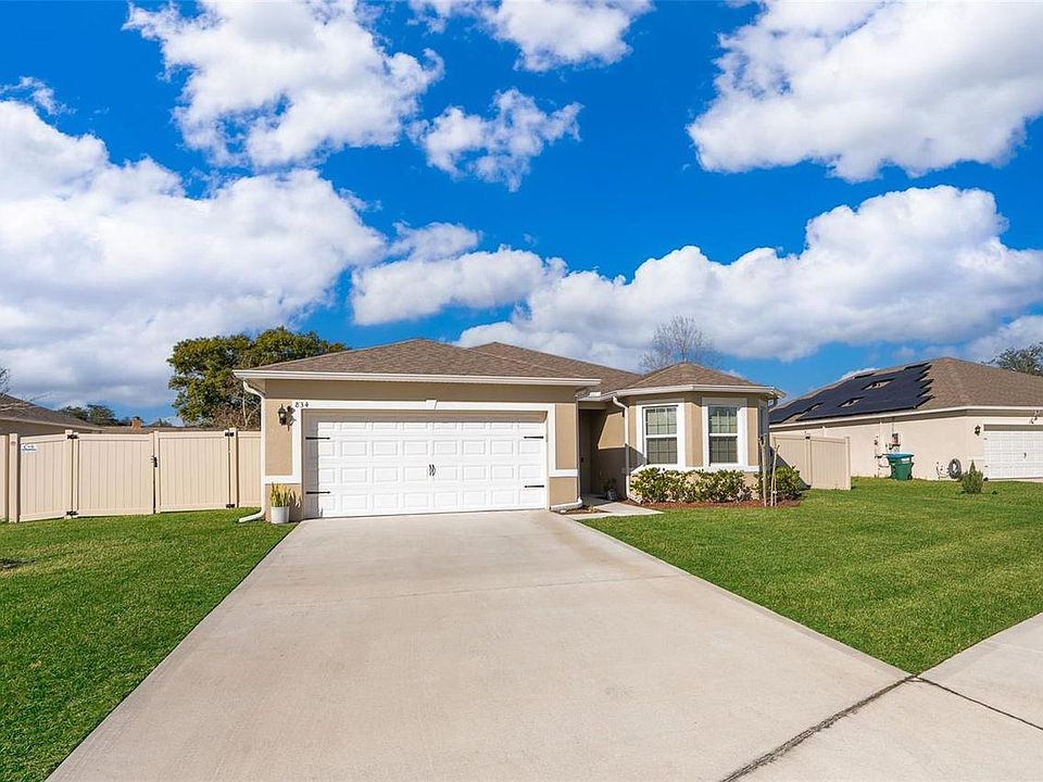Modern Living in Deltona! Discover this stunning 3-bedroom, 2-bathroom home with a 2-car garage and a driveway that fits up to 4 cars, perfectly blending contemporary design and everyday convenience. Enjoy the beauty and durability of vinyl flooring throughout the entire home, adding a sleek, modern touch to every room. The gourmet kitchen boasts quartz countertops, a spacious pantry, upgraded cabinets, and stainless steel appliances ideal for culinary enthusiasts. The laundry room, also featuring a quartz countertop, combines style with functionality. The master suite is a true retreat, featuring dual vanity sinks and a private commode area for added comfort. Step outside to a beautifully maintained yard with St. Augustine grass, a fully fenced backyard with gated access, and a cozy covered patio perfect for outdoor living and entertaining. As an added bonus, lawn care is included in the rent, giving you more time to enjoy your beautiful home. This property offers the perfect combination of modern luxury and functionality, thoughtfully upgraded to elevate your lifestyle. $2350+ $150 lawn care fee