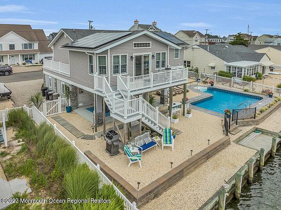 Welcome to the waterfront in Forked River! This lovely ranch was raised on helical piles and rebuilt after Sandy. Nearly all home systems are just 7 years young! The front porch welcomes you and leads to the inviting front living room with its clean, convenient natural gas fireplace and open floor plan to the kitchen, dining room and family room. Vaulted ceilings in the large family room open up the space and lead to 2nd story decks and the amazing outdoor space. The master bedroom comes complete with a private en suite bathroom. An in-ground pool, covered and uncovered outdoor seating areas and long dock complete this incredible waterfront package. A two-car garage makes parking easy and convenient while the owned solar panels increase efficiency and savings.