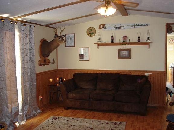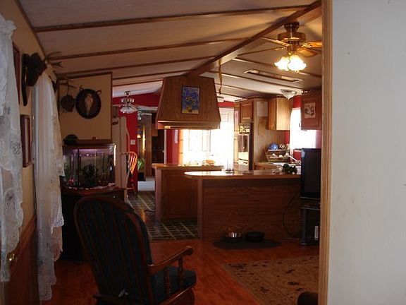What a great location ,close to town and the interstate for traveling places, your own field to have a horse or to let your dog run . Mobile home has been well maintained and is on a cement slab. paved road nearly to your drive way.