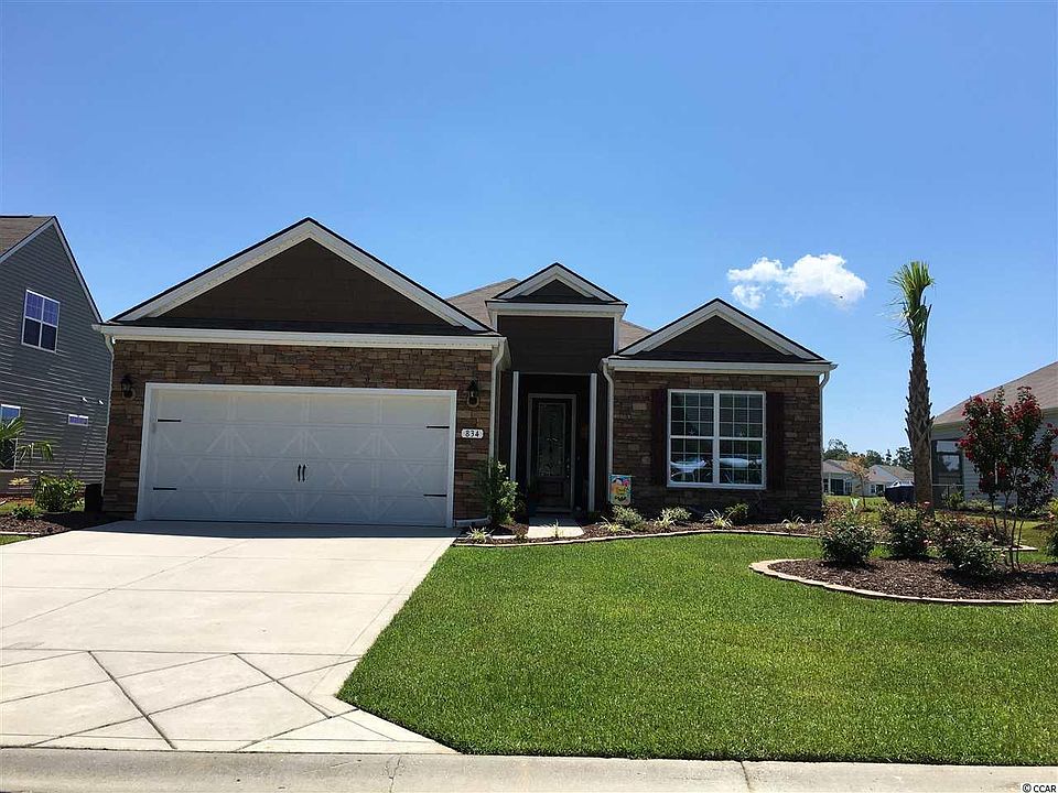 One Level Eaton floor plan with open and airy interior. Owner's Suite has Tray Ceiling, Walk-In-Closet and 5 foot shower. Relax and enjoy the wooded views. This is a beautiful home located in the desirable Carolina Crossing community on a great lot near the front of the community. There are elevated ceilings in the great room and all very open concept. There are ceramic tile floors with a wood look throughout the main area and ceramic tile floors in the bathrooms and laundry room, stainless steel appliances, granite countertops and tile backsplash in the kitchen. This house is a must see! Pictures are of a Model Home. All dimensions are estimates and not guaranteed. Low HOA fee incl: Lawn Maint. & Irrigation, Trash pick-up, Basic Cable, Community Pool & Clubhouse.