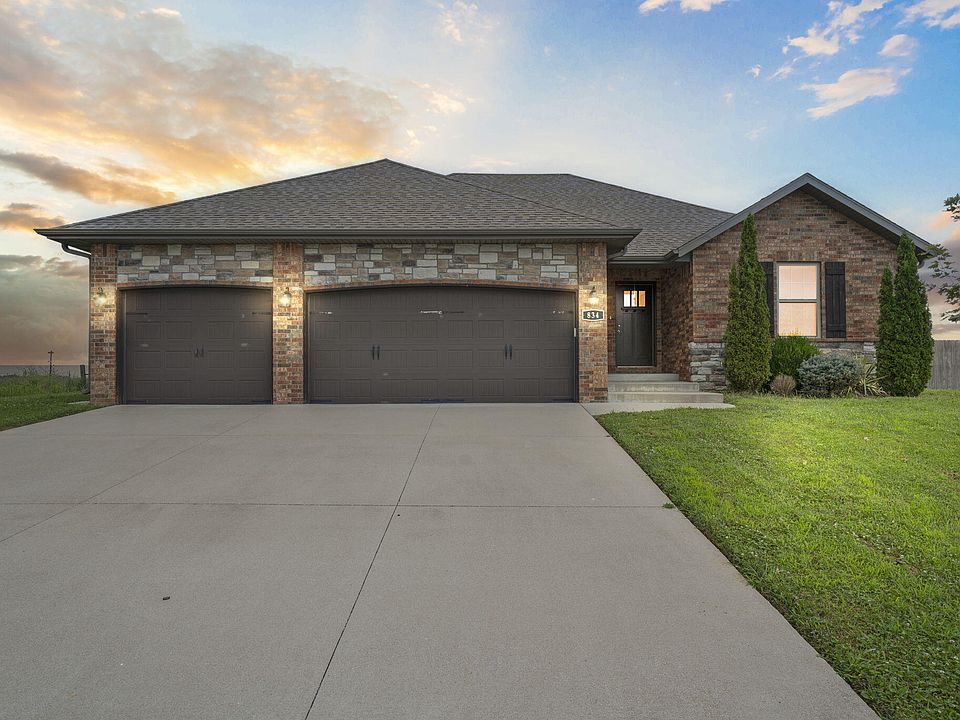 Welcome home! This high quality built house by Bussell built homes, sit's on a corner lot. Your backyard is facing open pastures with plenty of privacy while enjoying your outdoor space. Walk inside to an open layout plan that feels airy and cozy. You will be astonished with the luxury finishing touches this home offers with granite counter tops, hardwood floors in the main area, tile in the bathrooms, vaulted ceilings and fireplace built into a floor to ceiling stone frame. This 3 bedroom 2 Full bath home in located in a highly sought out neighborhood. Walking distance to the primary elemantry school, quick 15 minute drive into Springfield, and minutes drive onto HWY 60. You will not want to miss out on this home.