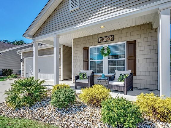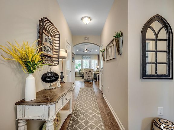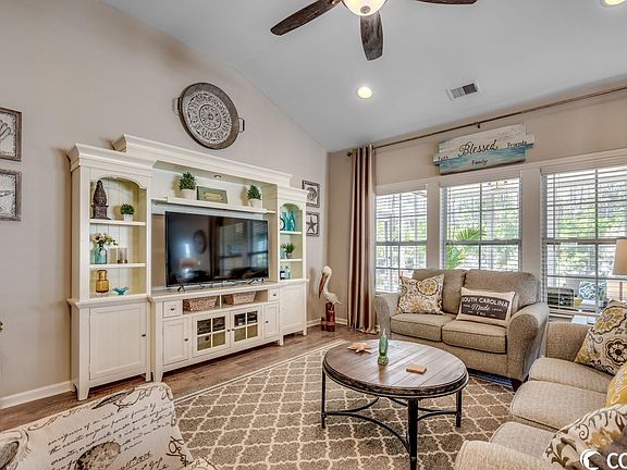 Here's your key to coastal living! Come see this remarkable single-level home located in Devonshire Estates at Windsor Plantation. This lovely home was built in 2018, and it sits on one of the most desirable lots in the community. The backyard overlooks a pond and a preserved wooded area with nature trails for you to enjoy. When you arrive, you will notice the shaker-style siding and a big southern front porch where you can sit back and relax in the shade. As you enter through the foyer, you will find an open concept with a split-floor plan. The kitchen features a gas range, LG fridge with a dual ice maker, a breakfast bar, stainless steel appliances, white cabinetry, quartz countertops, a farmhouse sink, and a tile backsplash along with a pantry. Most of the rooms have high vaulted ceilings with fans. Durable Mannington laminate flooring was installed in all the bedrooms. The Carolina room provides a lot of natural light and it's the perfect spot to enjoy a good book after a long day. The spacious owner's suite has a beautiful view of the water and the trees along with a large walk-in closet. The en-suite bath features dual sinks, an easy-access shower, and a linen closet. All the window treatments shall convey. There is a separate laundry room with custom cabinets located beside the garage. The 13 x 15 all-season room is the ideal spot to spend time with friends. Eze-Breeze windows were installed so that you can take advantage of this wonderful space all year long. It can be used as a screened-in porch when the sun is out and you want to feel that ocean breeze. The patio was added along with an adjustable pergola and a privacy shade. This provides a unique private area where you can take in the gorgeous view or grill up some delicious food. This backyard will give you the tranquility that you have desired for so long. This is a natural gas community. The landscaping has been very well-manicured. Arborvite shrubs were added along with a palm tree and stones. The concrete has been sealed with epoxy, gutters were installed, special shelving was added in the garage, and a storage area was built on the side of the house for the garbage. The hoa fees include trash pickup. There is an irrigation system as well. This home has been meticulously maintained by the original owners. Everything you need is on one floor, but there is a pull-down staircase to the attic where you can store holiday decorations and such. Owners are allowed to have motorcycles, golf carts, and pets. There is a huge clubhouse with a resort-style pool and a fitness center. This is a social community with lots of activities. Windsor Plantation is conveniently located close to everything that the Grand Strand has to offer. Market Common is super close by along with Surfside Beach and several top-notch golf courses. There are plenty of delicious restaurants and places to shop. Don't miss out on this rare opportunity! Schedule your showing today! Square footage is approximate and not guaranteed. Buyers responsible for verification.