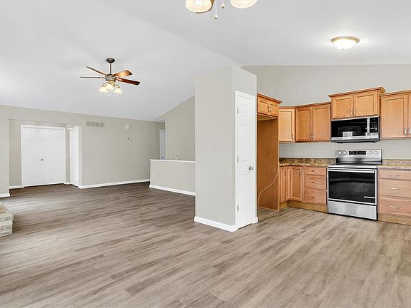 Attached ranch with over 2200 sq ft of living space. Three bedrooms, 3 full baths, and two car garage. The interior has been remodeled with New appliances, flooring, lighting, doors, trim, egress window and more. Additional features include main floor laundry, vaulted interior, wood burning fireplace with brick surround, fresh landscaping, covered deck, HVAC 10 years, water heater 4 years, Vinyl windows 2 years, larger gutters and downspouts, insulated and painted garage, faux white blinds, bay window in the breakfast room, ceiling fans, walk in closet, master bath with large vanity and 7 sprayer stand alone shower. Kitchen has maple cabinets, stainless steel appliances, smooth top stove, built in microwave, corner cabinets, staggered cabinets with trim. Lower Level has the 3rd bedroom, full bath, rec room and media room. Great location and access to highways, shopping, and walking trails. Low monthly fee of $65 to cover lawncare. Be sure to Tour *Duplicate of 24028113