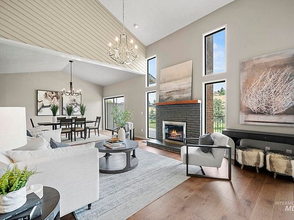 Located on the 6th hole of Crane Creek Country Club, this beautiful home captures the endearing vintage flair of an '80s mountain lodge, a distinctive element of resorts from that era. The three-level design offers stunning views of the expansive fairways, with a passport to the best of Boise just minutes from the front door! The outdoor enthusiast will appreciate easy access to skiing at Bogus, hiking/biking along the foothill trails, and North End parks; while city life awaits just minutes from Highlands Elementary, Hyde Park dining/pubs, and downtown Boise! The expansive open layout is accentuated by soaring ceilings and a vast array of windows, creating a seamless connection between the interior and the surrounding greenery. The welcoming interior showcases an extensive array of enhancements, featuring a gourmet kitchen with elegant full-height cabinetry, premium stainless-steel appliances, quartzite countertops, and a dedicated coffee bar. Additional highlights include...