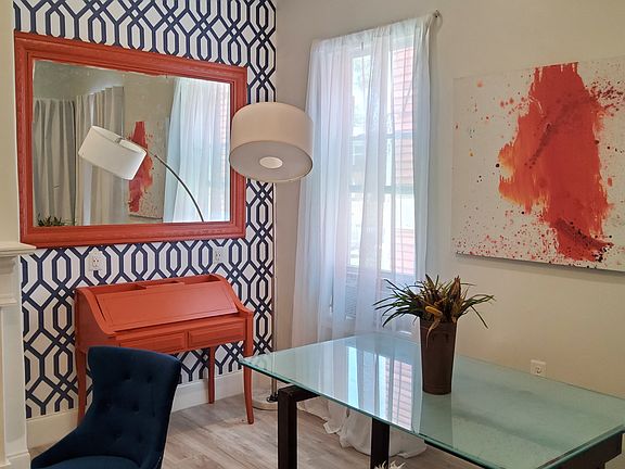 Experience the best of Savannah living in this charming and fully furnished 2-bedroom, 2-bath apartment, perfectly situated on a serene block just minutes away from the city's vibrant amenities. Located on the 1st floor, this stylish retreat features high ceilings, a spacious kitchen, and a roommate floorplan. Enjoy the convenience of a personal driveway and abundant free street parking, making city living stress-free. With a 12-minute walk to Forsyth Park and close proximity to SCAD and Memorial University Hospital, this home is ideal for students, professionals, or anyone looking to immerse themselves in Savannah's unique culture and charm. Whether you're enjoying a quiet night in or exploring the nearby dining options, this apartment offers a seamless blend of comfort and convenience that elevates your Savannah experience. Renter pays utilities: water and electric. Security and 1st month's rent is due at signing. No Smoking. No pets. Flexible lease term - Minimum 6 month lease.