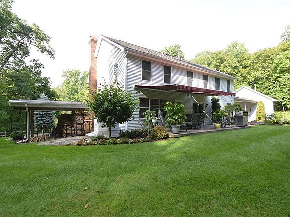 Custom built Colonial home inspired by models in Buckingham. Salisbury School District. Brick, vinyl construction, 5.5 acre lot featuring private setting with wildlife, professional landscaping, and endless opportunity to enjoy the outdoors and entertain. Enter the foyer with dramatic staircase, formal dining room to the left, and the living room with wood burning fireplace to the right. An expansive eat-in kitchen with custom cherry cabinets, large center island, and entrance to outside patio. Off of the kitchen is a natural light-filled family room with gas fireplace and views of outside conservation land, and convenient mud room and half bath. Upstairs is a spacious master bedroom with en-suite bath (shower and Jacuzzi tub) and walk-in closet, and 2 more large bedrooms. Completing the floor is an office, laundry/craft room, and hallway bathroom. Downstairs find a full basement with elevated ceiling and wood stove. Outside is a breezeway leading to a 3 car heated garage, workshop.
