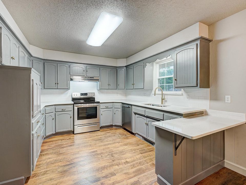House is move in ready and available MARCH 1, 2025. Full remodel completed in April 2020: New paint and flooring throughout, quartz counter top in kitchen, granite counter tops in bathrooms, stainless steel appliances, new hardware throughout, Large corner lot. Storage shed included. Oversized two car garage. Large rooms. Laundry hook-ups available in unit. 12 month Lease. Full lease will include additional terms.