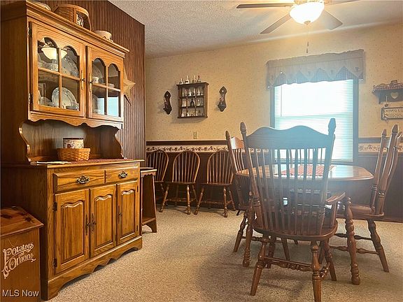 Welcome to this versatile 3-bedroom, 2-bath single-family home built in 1986, nestled in a quiet suburban neighborhood. The main floor offers a comfortable layout with an eat-in kitchen perfect for casual meals, and a full bathroom that's conveniently accessible from both the hallway and the master bedroom. The exterior features a charming mix of brick and vinyl siding, mature trees, and a neatly maintained lawn that adds to the home's curb appeal. Downstairs, the lower level opens up to a generous 25' x 23' living space complete with a wood burner setup - ideal for cozy evenings or entertaining guests. This level also includes a full bathroom with shower, washer/dryer hookups, and direct walkout access to both the backyard porch and the attached garage, offering seamless indoor-outdoor flow and practical convenience. Storage is abundant with a 20' x 25' room ready for tools, seasonal items, or hobby space, plus a unique 7' x 12' fruit cellar tucked beneath the front porch - perfect for canning, wine storage, or pantry overflow. Whether you're looking for move-in-ready comfort or a home with room to personalize, this property delivers space, charm, and smart functionality.