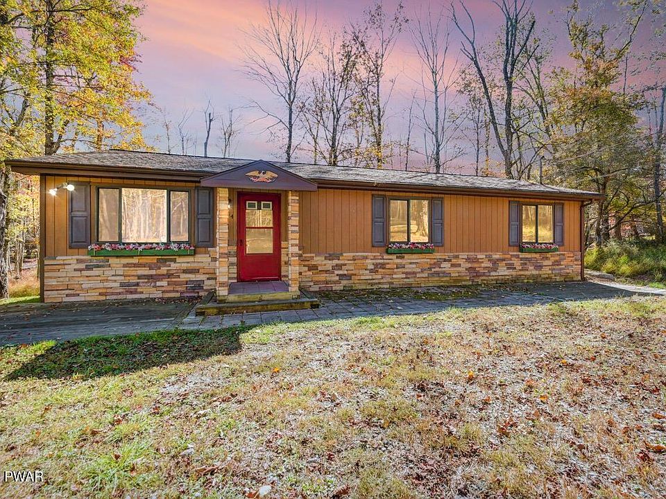 Wallenpaupack Lake Estates Ranch! One level living featuring 3 bedrooms, and 2 full bathrooms, one of them being a primary suite w/ its own private bath. The home has a newer roof and stone facade for a welcoming curb appeal. The home is located in the amenity filled Wallenpaupack Lake Estates with multiple pool, lakes, recreation facilities, and Lake Wallenpaupack access. The community has a sewer and water system for ease and convenience. This property is an affordable option for your primary residence, part time getaway, or as an investment property! Come check it out today.