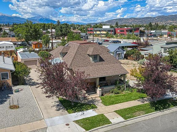 Welcome to this stunning piece of history in the heart of S-town! This large, charming 4-bedroom, 3-bathroom Salida home exudes timeless character and modern comfort. With its high ceilings and hardwood floors, every corner of this home resonates with a sense of elegance. As you step inside, the natural light floods through the tall bay windows highlighting the spacious dining and living areas. Cooking and entertaining are a joy in the beautifully updated kitchen, featuring modern appliances and a convenient breakfast nook for casual meals. The large pantry ensures ample storage space complete with the laundry and further storage space built-in. Imagine yourself enjoying a leisurely morning on the private cozy patio hot tub area just off the primary bedroom that boasts an outdoor shower. The primary bedroom has a walk-in closet and luxurious en-suite bathroom with a custom tile shower, soaking tub, and double vanity. The allure of this home extends outdoors, where a large front porch beckons you to unwind and a private flagstone patio offers a spot for outdoor entertaining. The expansive fenced backyard, complete with a garden, lush lawn, and RV parking, offers an idyllic setting and enough space to add an ADU. Easy access to the heated tandem garage from the side yard and driveway makes it excellent for setting up your own workshop along with enough space for your car and storage. Whether you're captivated by the historic architecture, the lush garden oasis, or the inviting interiors, this property is the true epitome of comfort and style. Embrace living in a lovingly preserved piece of history, where every corner tells a story and every moment is a memory in the making. Don't miss the chance to own this remarkable Salida home. Contact us today to experience the magic for yourself!