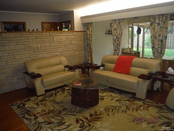 Well cared for brick veneer home. Almost 1700 square feet, and huge enclosed screened in porch with 2 ceiling fans. Spacious home with large dining area, 3 sided fireplace in living room. Attached 2 car garage with extra storage area. Privacy fenced yard. New basement recreation carpet and egress window. Good street appeal, nicely landscaped, great central Salina location.