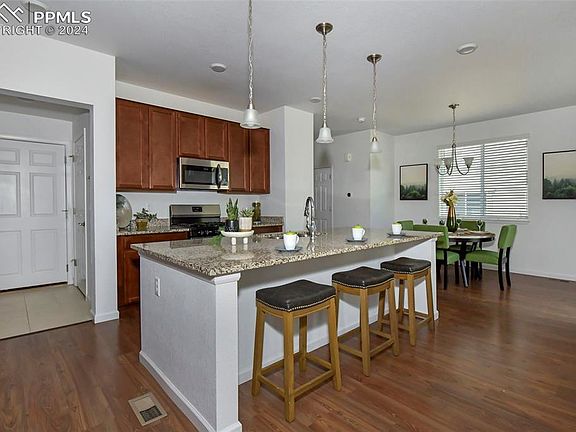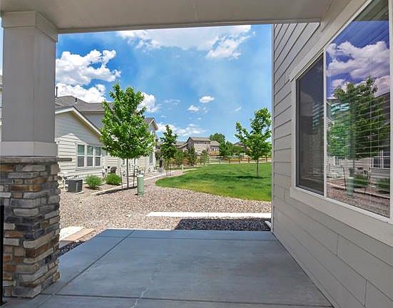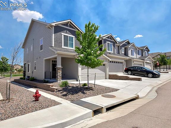 Beautiful D38 townhome with front range views and great location! The wide covered front entry allows room for patio furniture to enjoy views. Dine-in kitchen with massive granite island, counter bar seating, loads of extended height cabinets, pantry, stainless steel appliances including gas stove, pendant and recessed lighting, with a walk-out to a concrete patio (larger than other patios) open to common space. Grand two-story Great Room with luxury vinyl plank flooring and full 2nd story windows to let in light and lower windows for great private views of the grassy courtyard. Powder room with pedestal sink off entry. The upstairs Master includes a sitting area with great views of the courtyard, attached bath with double vanity and walk-in shower as well as walk-in closet. The upstairs also has two additional bedrooms with Mountain Views and walk-in closets, a full bath and laundry room with built-in shelving and front-loading washer and dryer on pedestal drawers to make life easy. The finished basement has plenty of room for storage in two separate unfinished spaces, along with a large family room, and additional large bedroom and ¾ bath. Attached 2 car garage includes wall shelving. 9 ft. ceilings, Nest smart thermostat, luxury vinyl plank flooring. This is a wonderful space you won’t want to miss in a terrific location, conveniently located off Jackson Creek Parkway near shopping and restaurants, YMCA, and quick access to I-25! Come see!