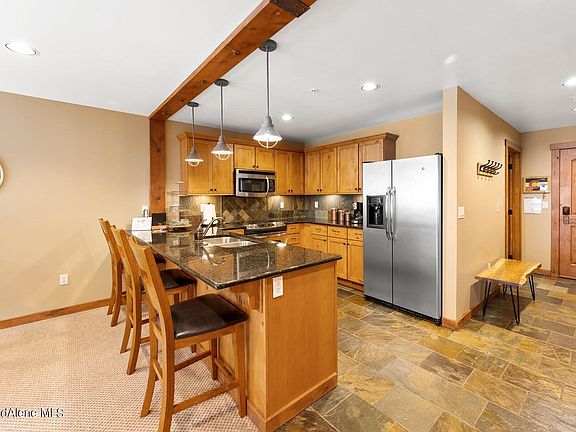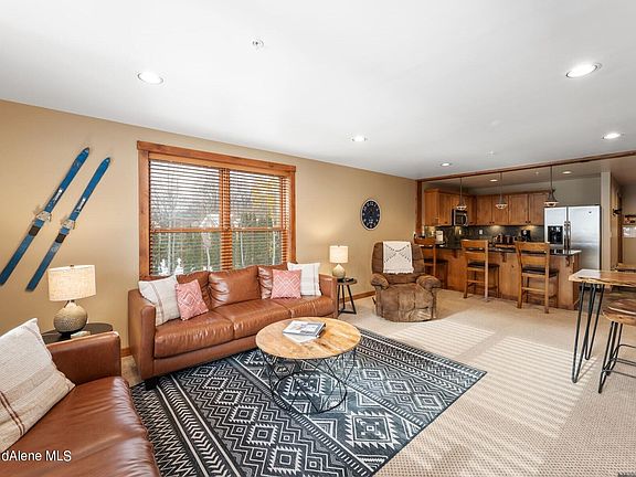 ONE YEAR PREPAID Association Fees! Well-kept and quiet Luxury Condo at the base of Silver Mountain Resort. An end unit boasting an Open Floor plan with 1,092sqft, 2 bedrooms with Master Suite and private South facing deck with views of the Gondola. Fully furnished with dishes and linens make this unit truly turnkey. Building offers Secure Access, Plenty of Parking, WIFI, Hot Tub, Dry Sauna, Steam Room, Laundry, Ski and Bike Storage and Onsite Management.