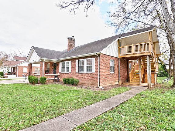 Completely remodeled and in walking distance to the square! Must see inside to believe! Newer HVAC & hot water heater. Downstairs includes new blinds & fresh paint, sand & refinished hardwoods. Upstairs studio apt. is currently rented thru end of July and has new tile & bath & butcher block counters. Both floors include new stainless steel kitchens with the downstairs offering an island & granite counters. This amazing home also includes a 40x30 unfinished basement & a detached 2 car tall enough for an RV.