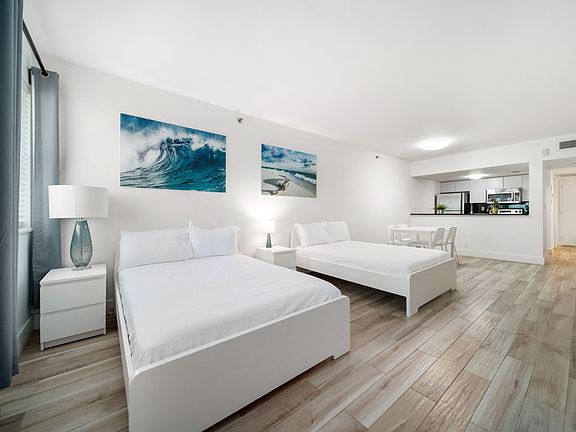 Fully furnished studioTwo queen bedsChic decorSteps from the beach