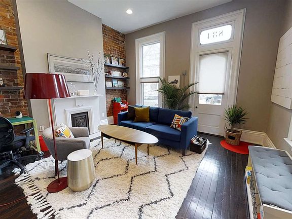Spectacular city views, a modern third-floor master bedroom suite, and open first floor layout make up this historical showpiece in Newport's East Row Historic District. A large back yard, spacious kitchen featuring a gourmet Bertazoni stove and large polished concrete island, and fabulous lighting fixtures make this home a great place to entertain and live just minutes from Cincinnati.