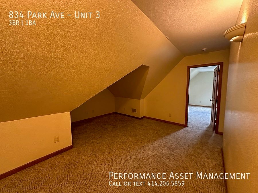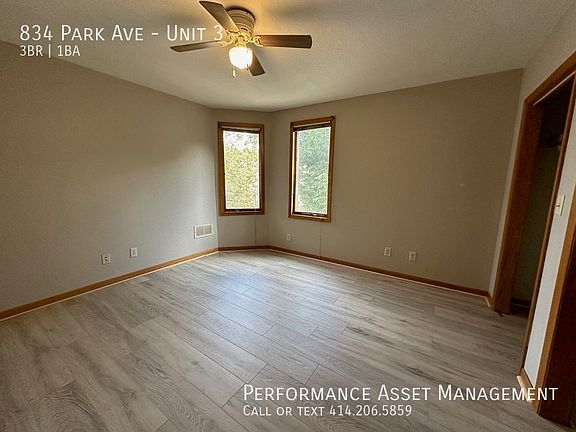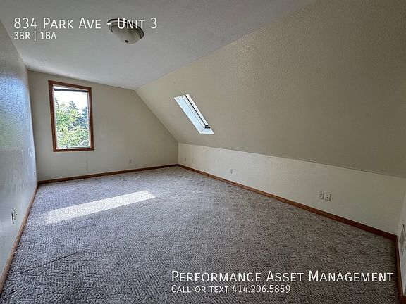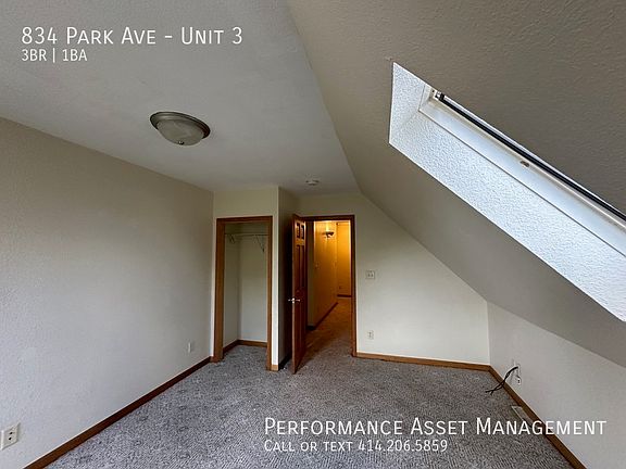 Address: 834 Park Avenue (3) Racine, WI 53403 Rent: $895.00/ month Security Deposit: $895.00 Available: Now -3 bedrooms -1 bathroom - Gorgeous wood like flooring throughout - Private balcony - Abundance of natural light from numerous windows - Large shared backyard - large bedrooms - Inviting living area great for entertaining guests - Laundry area for your convenience - Ample street parking available central air Stunning skylights in the upper level bedrooms - Pets allowed for $25/month each pet For additional questions regarding this listing, please contact our agent: PRE-QUALIFICATIONS: - Monthly income must be 3X the rent. - Verified income required [paystubs/bank statements] - No prior evictions - 1 year of positive rental history [If you do not have a rental history we will request a Co-signer to apply with you] RENT WITH PAM: -Fast Online Application -Pay Rent and Track Service Online -15 Years Strong with 1000+ Google Reviews Coin Laundry Harwood Floors