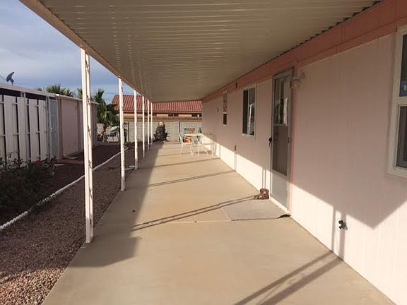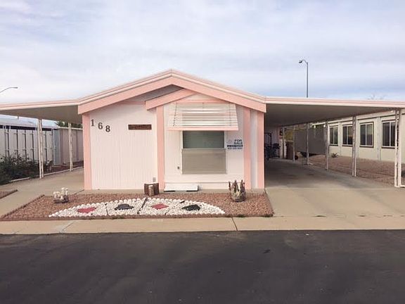 This large open home has a spacious living room that flows from the large South Patio (complete with patio furniture) through the front door. Enjoy the spaciousness of the living room that flows into the kitchen. This kitchen will make any chef happy with lots of counter space, breakfast bar, hutch with crystal, cabinets, stove, refrigerator, microwave, garbage disposal and dishwasher. Washer and Dryer are located in the shed, as well as a 40 gallon water heater. This is an all electric home with ceiling fans. One in each bedroom and one in living area. There is an air conditioner in the living room and a furnace. The master suite is a spacious room that would easily fit a king (there is a queen size bed now). Large bathroom with a walk in shower, newer countertops, lighting for vanity and toilet. The guest room has a full/double size bed and is right by the guest bathroom. The guest bathroom has a tub/shower and the countertops have also been updated. This home is completely furnished, including housewares, linens and furniture. All window treatments are updated, new dual pane windows throughout the home, furniture and housewares stay with this beautiful home! The plumbing was all replaced in 2012, roof was sprayed/maintained in 2015. 12 X 12 Shed with electric, workbench, closet and shelves! It is just waiting for you to enjoy! Call today to set a time to tour your next home! All you need is your suitcase! This home is located in an active 55+ community. Enjoy the resort style pool, clubhouse, organized events and so much more! EHO, certain restrictions may apply. www.aznestfinders.com