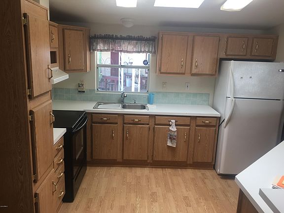 Relaxed living in beautiful home in well maintained 55+ Pueblo Manor Park! Oversized corner lot has views of the Superstition Mtns and mature citrus trees! Community includes pool & hot tub, shuffleboard crt, clubroom, pickleball, organized recreational activities & more! Ground set home, no stairs front or rear doors! Living area, kitchen & dining room come together in Great Room layout. Master Bedroom features roomy bathroom with French doors, walkin shower, storage & big walkin closet! Double door closets in spacious 2nd bedroom! Snack bar for casual dining & lots of cabinets for storage in kitchen! Inside laundry, new flooring, security screen doors, ceiling fans throughout, covered 2 car carport & patio, and great storage shed. Queen bedset, dining set, couch, desk, armoire included!