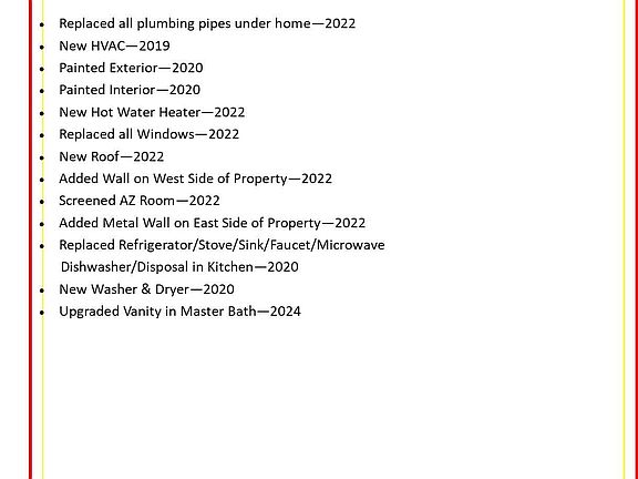 Upgraded like BRAND NEW! Owner has added NEW Roof, AC, Hot Water Heater, All Windows, All Appliances, New LVP Flooring, All pipes under the home, Painted inside and out, Added 2 outside walls on Carport Side and Patio Side. This home has split Floor Plan with 2 Master Suites with Full Bathrooms. Huge Family Room with Vaulted Ceilings & Formal Dining Area, Breakfast Bar, Plenty of Cook Space in the kitchen. Huge Laundry Room with Stainless Sink and Plenty of Storage and countertop and easy access to a bathroom. Added Screen to Arizona Room with Large TV, Canned Lights. , Also open Patio on Back, 2 storage sheds. Pueblo Manor Offers Heated Pool with Spa, Pickle Ball, Bocci Ball, Recreation Hall, Workout Room, Craft Room and Library. Absolutely Move in Ready!