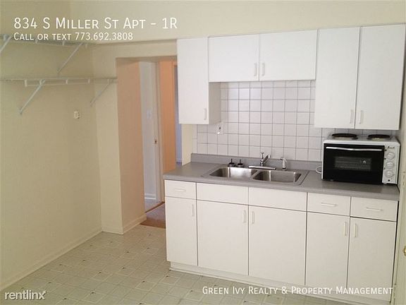 This is a 3 bedroom, 1.0 bathroom, apartment home. This home is located at 834 S Miller St APT 1R, Chicago, IL 60607.