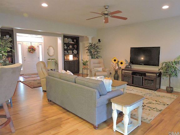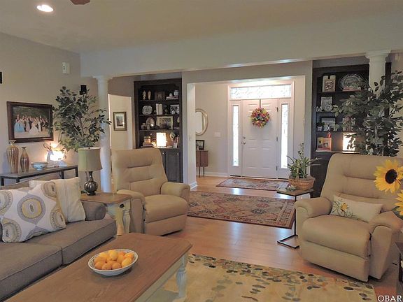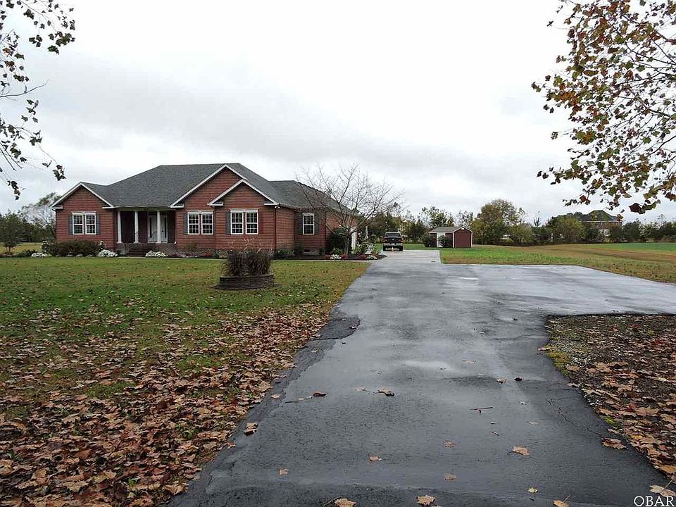 The winding drive through the trees welcomes you home to your elegant yet inviting rancher nestled on 3 acres in Moyock. Gorgeous great room boasting upgraded wood laminate flooring, fireplace, built in book shelves & wired for surround sound. Cook's kitchen with newer quartz c-tops, kitchen island, breakfast bar & nook. Master suite recently updated to include dual vanities, walk in tiled shower & deep soaking tub. Huge laundry room, 3 car garage floored UNFROG offers loads of walk up storage & could be finished. XL parking pad. Nicely landscaped, immaculate & well maintained beauty!