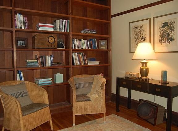 Julia Morgan Treasure in North Berkeley Be prepared for a delightful surprise! Rather understated from the front, this shingled home blends comfortably with its natural setting of live oaks and native plantings. But open the door and enter a great hall with dramatic redwood ceiling, inviting fireplace and spectacular views. You'll be able to see north with a direct view of Mt. Tamalpais and the Bay. San Francisco looks fantastic, especially at night with lights twinkling. The seller had an evening ritual of watching the sun set between the towers of the Golden Gate Bridge. This is a haven for lovers of books and collectors of fine objects: redwood shelving runs the entire length of one wall. The south wall is full of windows that wash the room with light. This main floor contains a small charming office, powder room, dining area and updated kitchen with access to the one-car garage. A small balcony provides the ideal spot to read a book, or to otherwise appreciate life in the Berkeley hills. On the floor below you'll find four bedrooms, two full updated bathrooms, and a spacious plus room with laundry. Exit to the side and head down for another surprise: a terrific work space runs along the back of the house, facing the terraced garden and opening to a private patio. Used as a workshop, work-out room, office or as a prep. space for alfresco dining, this room with separate entry, and a refrigerator, will become a favorite retreat! So many older homes may have lovely presentation rooms, but few have storage for "gear" or hobbies, or just all that extra stuff we accumulate. This home has a super "pantry" in that lower work space, as well as dry storage in the "machine room." In addition, a pull-down ladder from the attic provides access in the garage to attic storage space. Academics as well as those of us who suffer from Book Lust will appreciate the miles of lineal feet of bookshelves found in this home on all three levels. No need for a market umbrella here: a remar